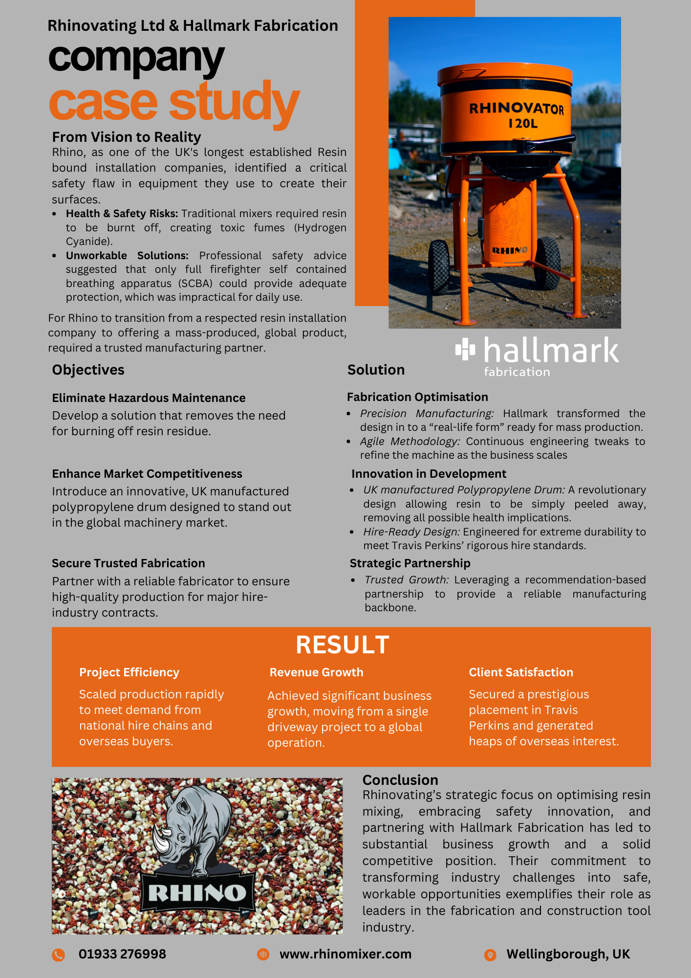 At Hallmark Fabrication, we used our expertise in precision manufacturing to optimise the design for durability and scale. While Rhino utilised a revolutionary polypropylene drum to solve the toxic fume issue, we engineered the high-quality metal framework that makes the machine "hire-ready" for national chains like Travis Perkins.
